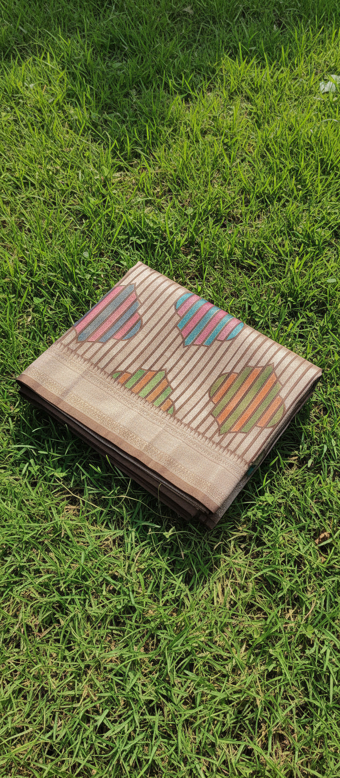 Dark Snuff Brown Semi Banarasi saree with rich zari work with Blue self blouse — elegant and perfect for festive occasions.